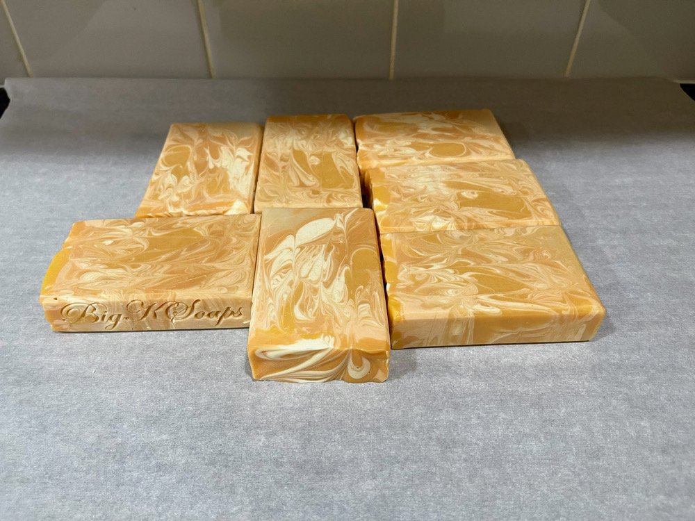 Since my products are all handmade, hand-poured, and hand-cut no two bars of soaps will look exactly the same. As colors, patterns, and shape can and do vary from batch to batch, please expect differences in my designs from time to time.