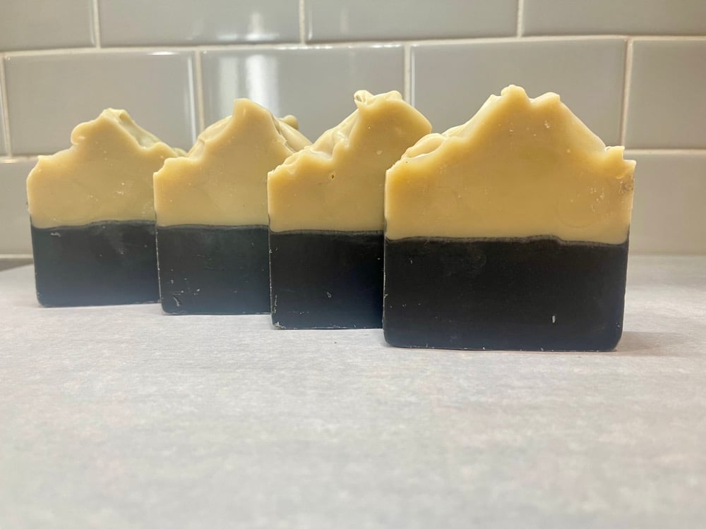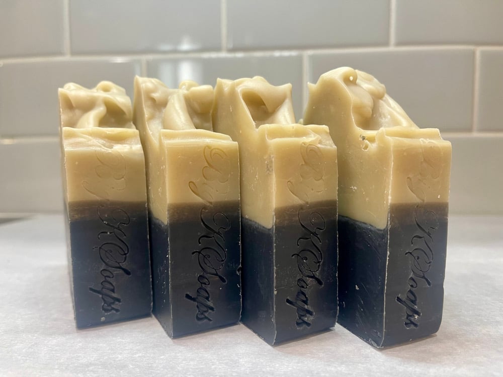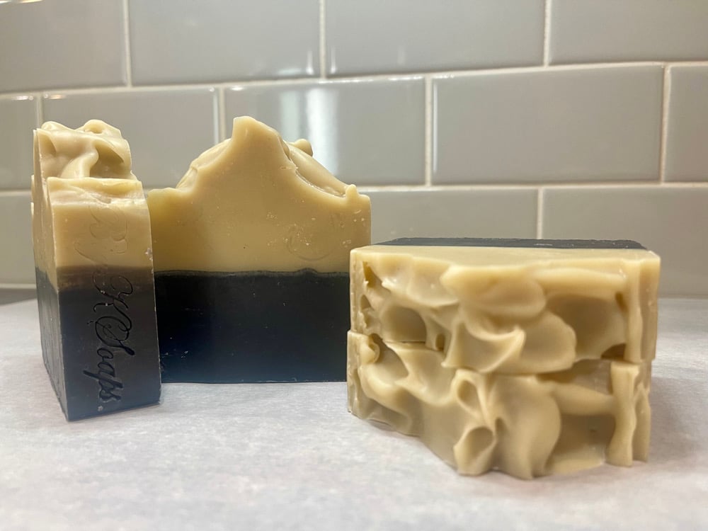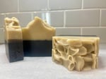 Back in all its glory! This has been a customer favorite . Zen atmosphere when you look at and use this soap. Calmness is a wonderful thing. This soap is scented with essential oils of tea tree, rosemary, and lemon. Tea tree as well as rosemary are known antibacterial natural essential oil and also gentle on the skin. Saponified oils of olive, coconut, rice bran,avocado, and castor oils. Shea and Cocoa butter. charcoal, and French green clay. Tussah silk, colloidal oats. Detoxifying Charcoal and French green clay have been known to draw out impurities while leaving your skin wonderfully clean and hydrated. French Green or Illite Clay is known for its excellent oil-absorbing properties. Its green colour is because it contains iron oxides and decomposed plant matter - typically algae or chlorophyll. It has a very fine texture and is rich in minerals such as Magnesium, Calcium, Potassium, Zinc, Cobalt, Copper, and Selenium. French Green Clay also helps with acne and heals blemishes. Suitable for Oily or Sensitive skin. This listing is for 1 bar of soap Since my products are all handmade, hand-poured, and hand-cut no two bars of soaps will look exactly the same. As colors, patterns, and shape can and do vary from batch to batch, please expect differences in my designs from time to time. To ensure that this artisan soap will last please keep soap dry in between uses by placing it on a draining soap dish or soap sponge.